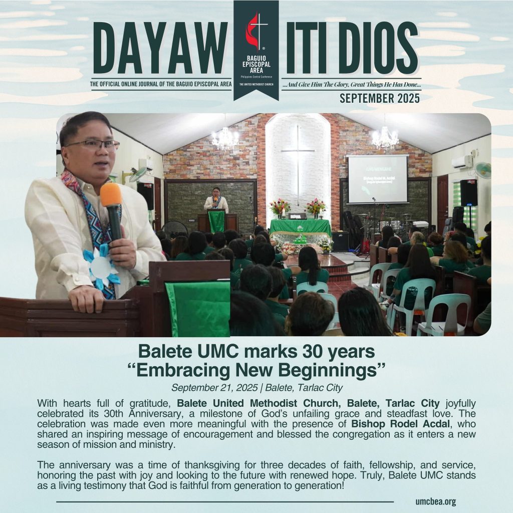 With hearts full of gratitude, Balete United Methodist Church, Balete, Tarlac City joyfully celebrated its 30th Anniversary, a milestone of God’s unfailing grace and steadfast love. The celebration was made even more meaningful with the presence of Bishop Rodel Acdal, who shared an inspiring message of encouragement and blessed the congregation as it enters a new season of mission and ministry.