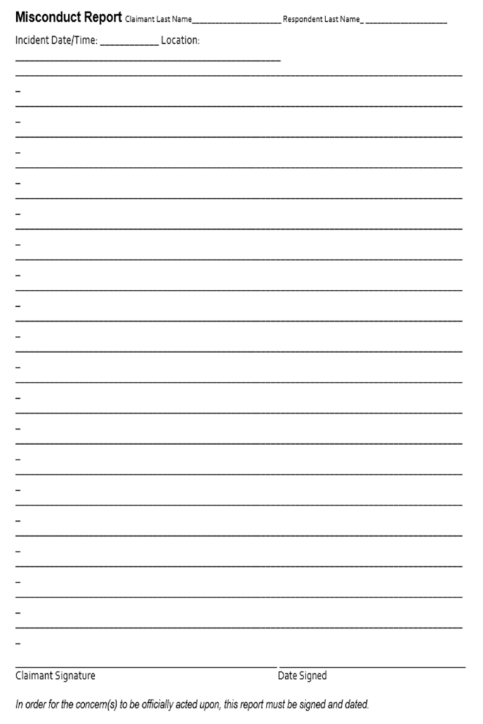 B. The aforementioned processes are the first initiative toward making a formal complaint. However, in order for a complaint to be formally acted upon, it must be in writing, signed and dated by the complainant. The Report of Clergy Sexual Misconduct Form is a standardized form used for reporting the concerns of clergy’s misconduct officially in writing.